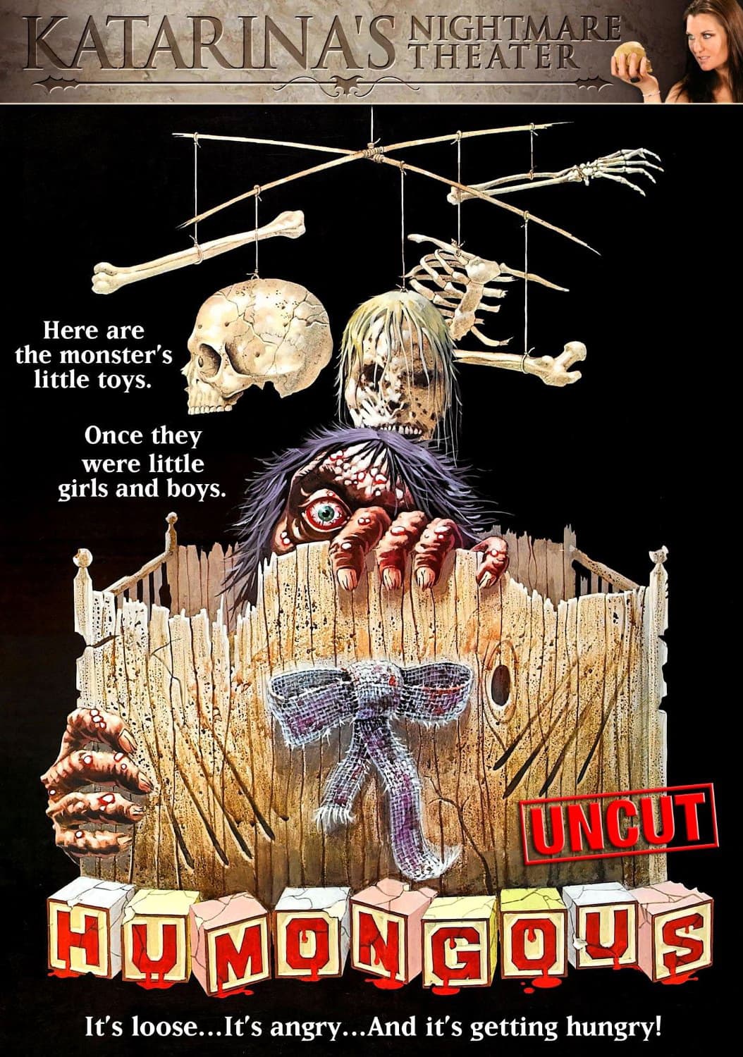 For years I skipped on the film because I thought it starred a giant man baby and that always seemed extra unpleasant. Well, I was wrong! While Humongous’ art does feature a crib with a monster hand popping out of it, the film I was thinking of was THE UNSEEN which does feature an extra un-pc portrayal of a mentally handicapped man monster running around in a diaper.